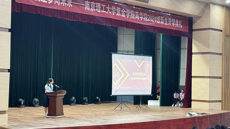 庄严的国歌结束后,商学院院长方荃发表了热情洋溢的致辞。方院长首先对新生们的到来表示热烈欢迎,并向新同学们简要介绍了学院的发展历程、办学理念及取得的成就,勉励新生们要珍惜大学时光,勇于探索未知,敢于挑战自我,不断提升综合素质,成为有理想、有本领、有担当的新时代青年。方院长的讲话语重心长,为新生们指明了前进的方向。
