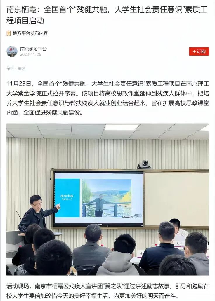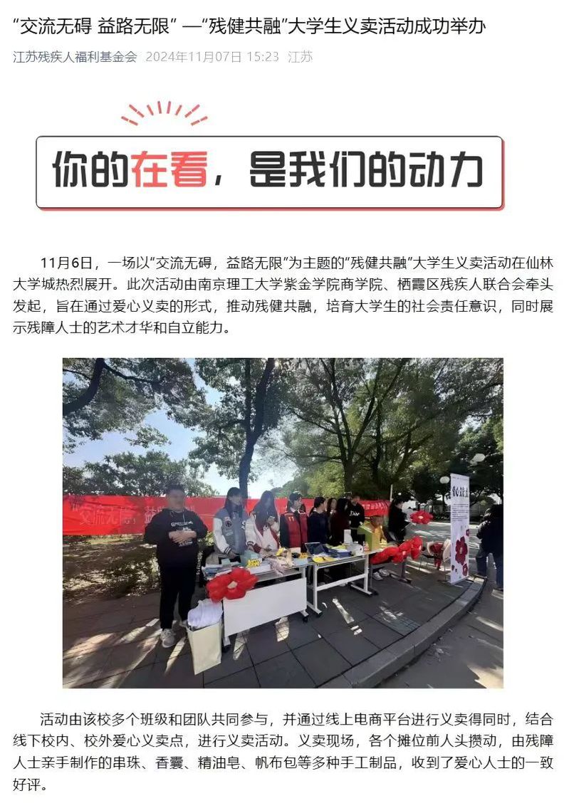 栖霞区残联理事长黄伟高度评价:“商学院的‘三融共生’模式,为残疾人事业注入了专业活力和青春力量。”南京理工大学紫金学院商学院党总支将继续以党建为帆、以专业为桨,在残健共融的征途上奋楫前行,书写高校服务社会的温暖答卷。
