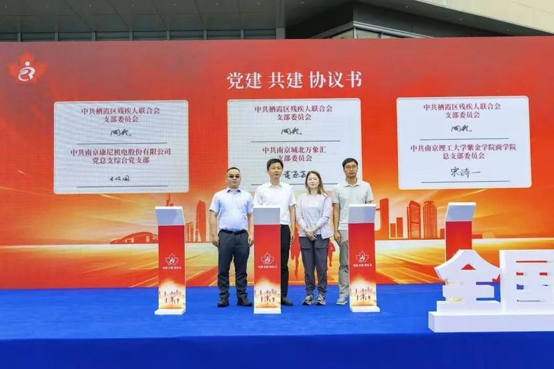 5月16日上午,栖霞区举办“党建领航启新程 科技助残促共融”第三十五次全国助残日活动。江苏省残联、栖霞区委区政府、南京市残联相关领导出席。南京理工大学紫金学院商学院党总支作为栖霞区残联党建共建单位,党总支书记宋诗一、会计学专业教师郝文及学生代表受邀出席活动并签署党建共建协议。双方将以党建引领凝聚合力,以商科创新服务民生,共同探索“党建+专业+助残”三融共生新模式,助力残疾人事业高质量发展。