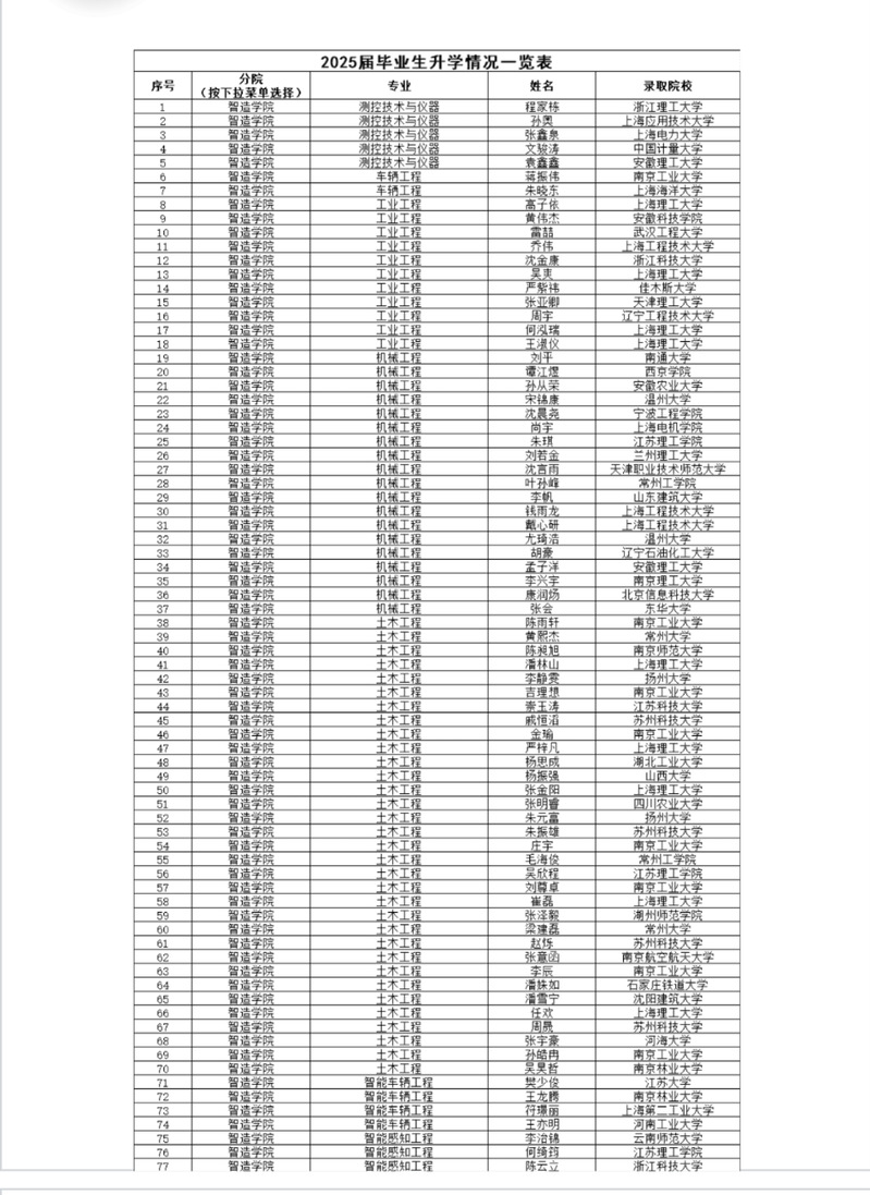 学校对毕业生实行全程化、个性化就业指导,切实帮助毕业生选择就业目标、制定就业计划、落实就业去向,针对研究生复试、考公考编等进行专题指导。我校十分重视毕业生就业工作,年终毕业去向落实率平均保持在95%。近三年,学校共有930名毕业生被国内外著名高校录取为硕士研究生,考研升学率保持在10%,其中“双一流”高校录取率每年均超过三分之一。针对每届毕业生学校定期召开线下大型校园招聘会,并举办网络招聘会、小型地区专场招聘会、院系专场招聘会、企业宣讲会等。在考虑招聘会规模和数量的同时,学校也十分注重知名企业的比重以及招聘岗位的质量。近三年有约150位毕业生进入国家税务、公安、教育等机关部门工作,国企、外企录用超过1000人,一大批毕业生被中铁集团、中国石化、中建集团、中国能源集团、国家电网等大型企业单位;上海铁路、南京地铁等轨道交通行业;国有四大银行、邮储、江苏银行、南京银行、毕马威会计师事务所、国信证券等金融行业单位录用。学校先后与南京地铁、仁宝集团、乐金显示、中智江苏等企业进行校企合作,为企业输送高质量的人才。单位进校招聘后对我校毕业生满意度很高,常出现批量录用的现象。学校现已与省内多个人才市场建立合作关系,如南京市人社局、无锡市人社局、昆山市人社局、江阴市人社局、太仓市人社局等,并与众多用人单位共建就业基地,立足实效,推进毕业生充分就业,现已取得良好成效。